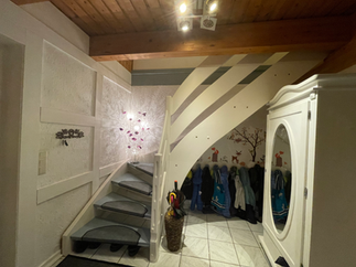 Wir haben uns schlussendlich für eine Renovierungsfarbe aus dem Baumarkt entschieden. Wir hätten nicht mal die Treppe abschleifen müssen. Um ein richtig gutes Farbergebnis zu bekommen, ist es aber ratsam sie zumindest gut anzuschleifen. Wir haben uns mit dem schleifen sehr viel Mühe gemacht und dafür zu zweit, ca. 1 Tag gebraucht.